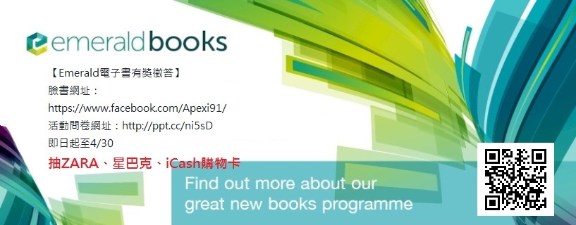 即日起至4/30,參加「Emerald電子書有獎徵答」,抽ZARA、星巴克、iCash購物卡!